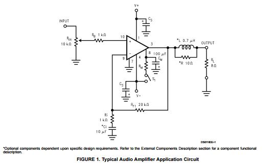 The LM3876 is a high-performance audio power amplifier capable of delivering 56W of continuous average power to an 8Ω load with 0.1% (THD + N) from 20 Hz–20 kHz.