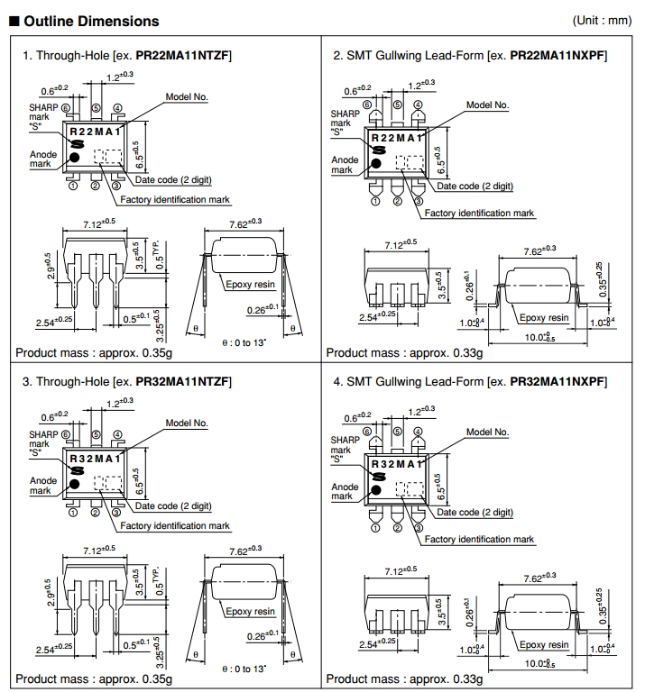 PR32MA11NTZ SMD LED Diode T(rms)≤0.15A, Non-Zero Cross type DIP 6pin SSR